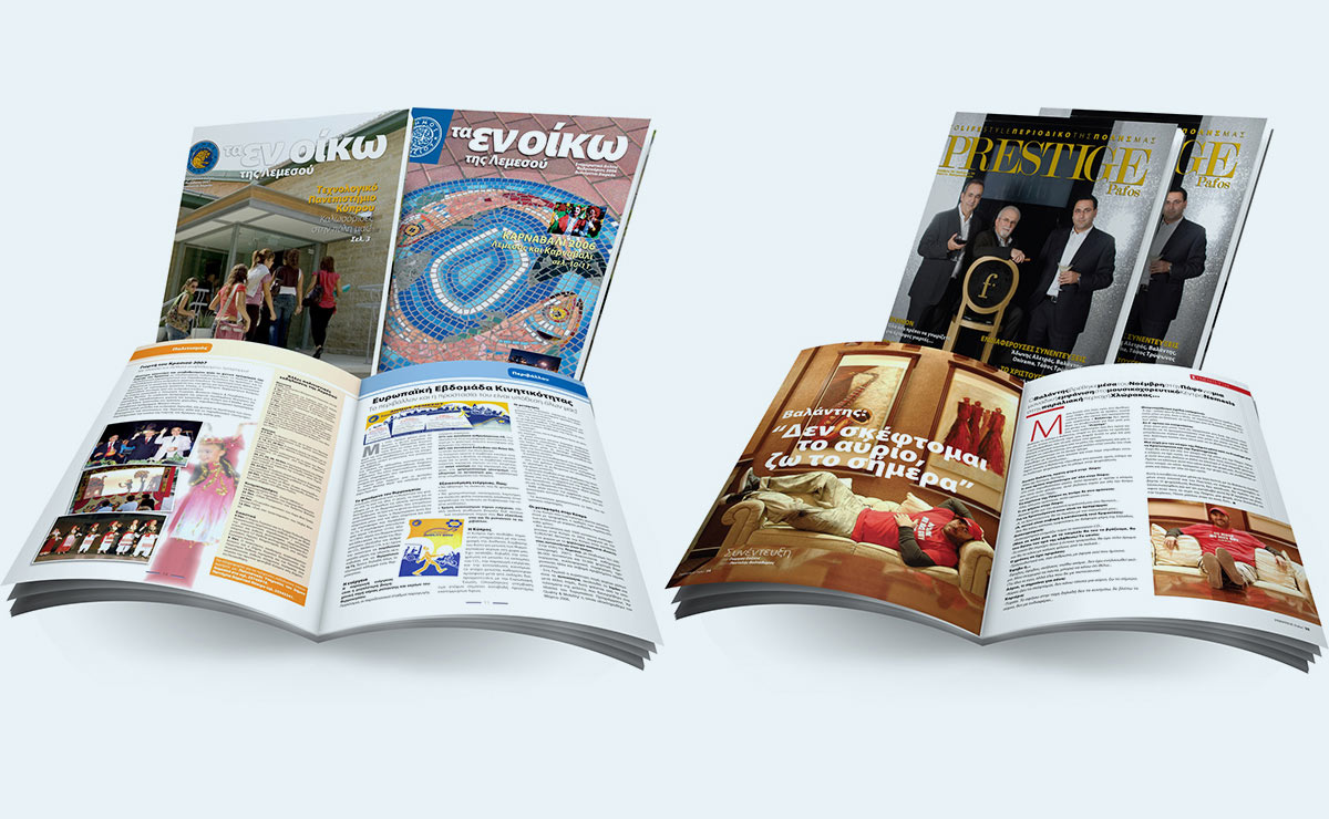 Μελέτη, σχεδίαση - σελιδοποίηση πολυσέλιδων εντύπων καθώς και περιοδικών εκδόσεων, βιβλίων, εφημερίδων και καταλόγων.